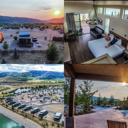 Sun Outdoors Rocky Mountains completely wowed us. We stayed in one of their beautiful cabins and loved every detail, from the cozy interior to the mountain views from the porch. It’s one of the most stunning resorts we’ve seen, with a modern lodge, pool and hot tubs, on-site activities, and sweeping Rocky Mountain scenery. Even though we didn’t RV here, we explored the RV sites and would absolutely recommend them. They’re spacious and perfectly placed to soak up those views.