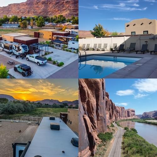 Village Camp Moab is a gorgeous, adventure-ready resort just minutes from Arches and a quick trip to Canyonlands National Parks. The sites are roomy with full hookups, and the resort feel is elevated with a stunning clubhouse, pool, hot tub, and gathering spaces that make it easy to relax after a day on the trails. We loved the modern vibe, epic red rock views, and how easy it was to launch into Moab’s endless outdoor adventures right from camp.